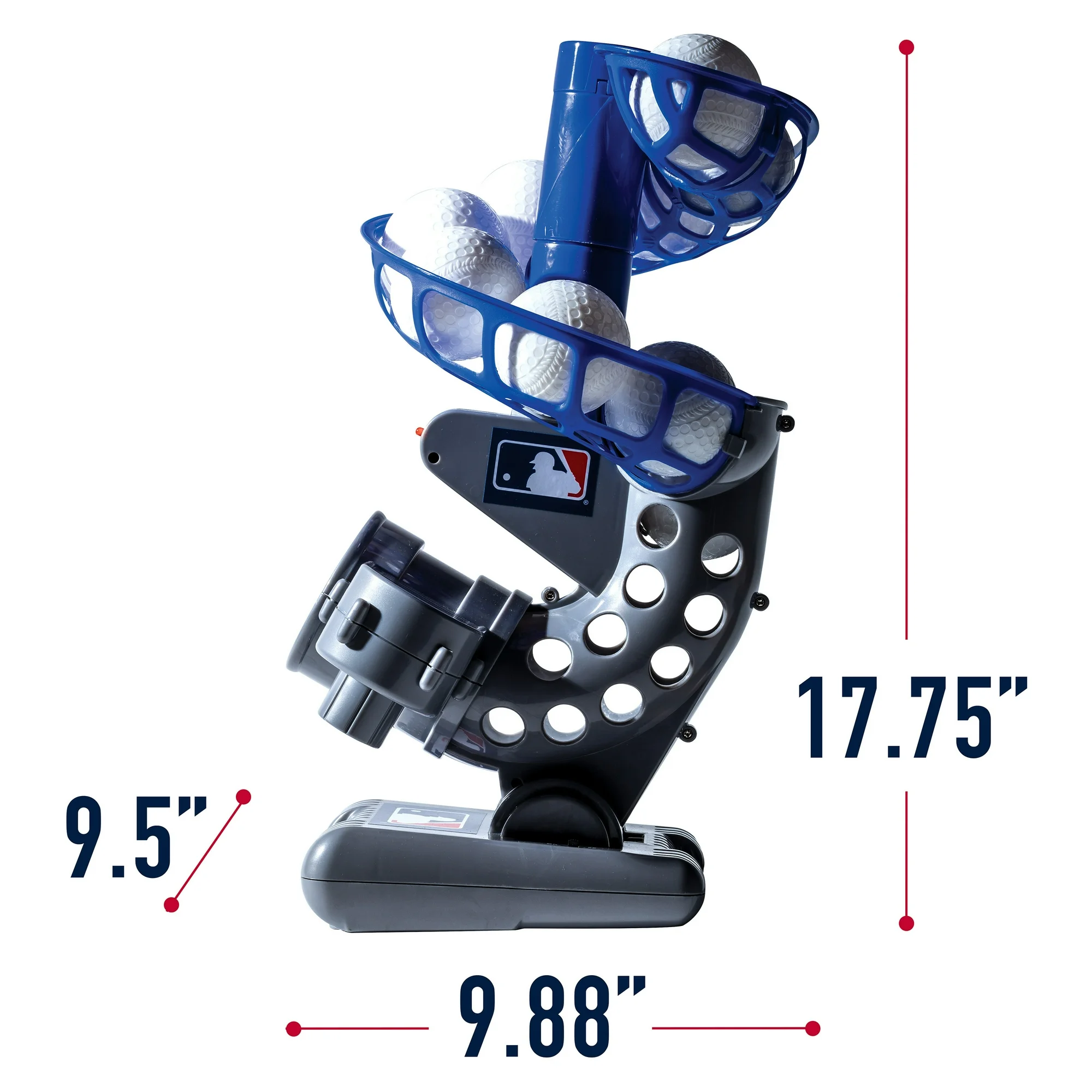 - 7 SECOND PITCHES: This electronic pitching machine for kids is a great way to encourage them to practice batting skills. The ball pitches every 7 seconds for improved accuracy and precision on the field. Assembled height 7.75 x 9.5 x 9.875 inches
