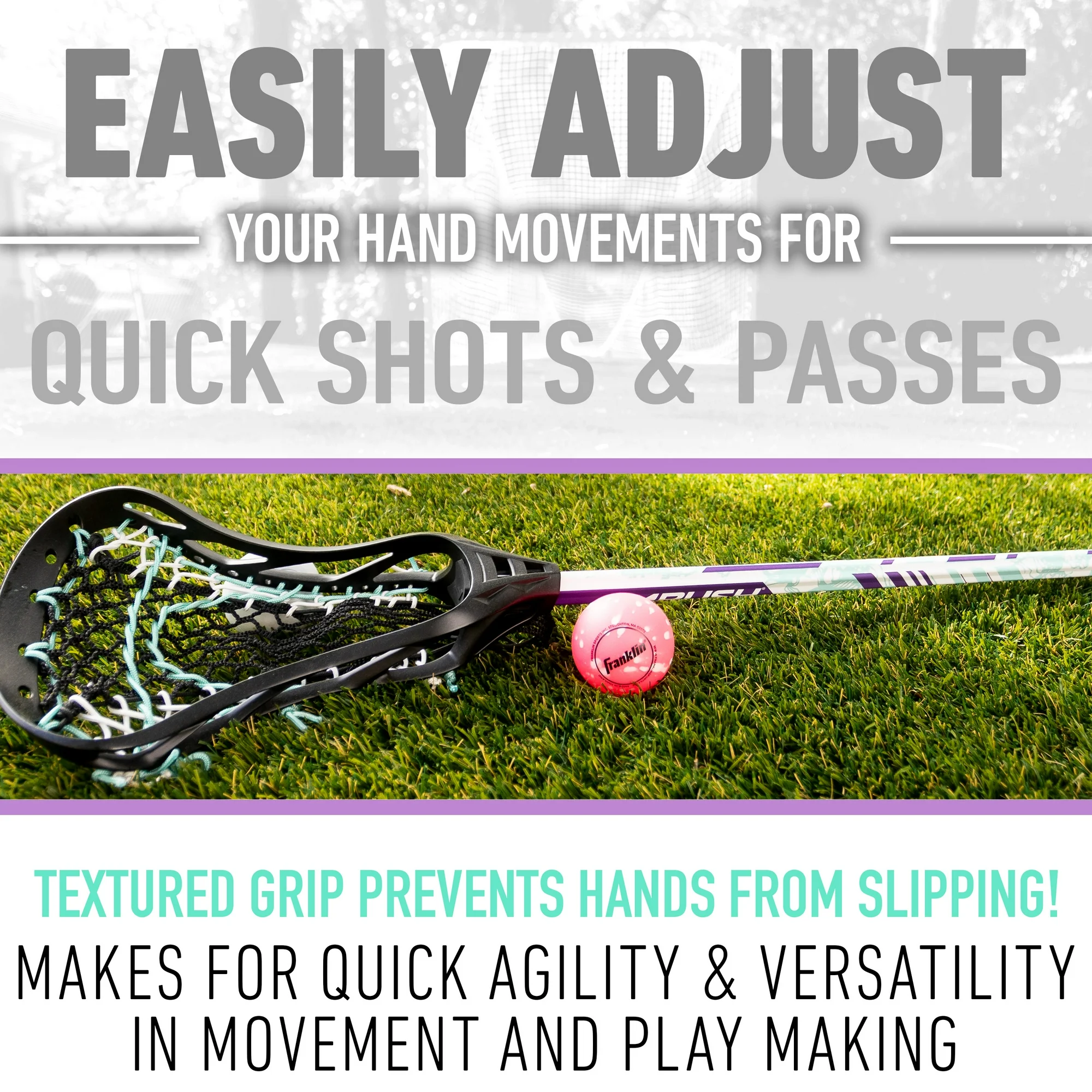Franklin Sports’ Ambush Women’s Lacrosse Stick is the perfect lax stick for women and girls who are looking to dominate the field and fill up the goal. This aluminum lacrosse stick is designed for ultimate speed and control to help players cradle, pass, and shoot the ball with pace and accuracy. This women’s lax stick is built with a 30″ inch durable aluminum shaft for a combination of toughness and speed that will ensure premium quality play season after season. The shaft is also coated with our Neo-Grip surface texture to give players additional control out on the field. With increased shaft grip, players can cradle, pass, and shoot with total precision and accuracy so they can control the game. The head is strung with a 10 diamond, semi-soft mesh pocket that is designed to shorten the break-in period. The soft, responsive mesh material molds around the shape of the ball and gives players a nicely formed pocket that makes cradling a breeze. Perfect for players of all skill levels, the Ambush women’s lacrosse stick is designed to help players improve their control, precision, and accuracy as they hone their skills and bring their game to the next level. So, if you’re ready to step up your lax game, grab your Franklin Sports Ambush Women’s Lacrosse Stick and hit the field today!